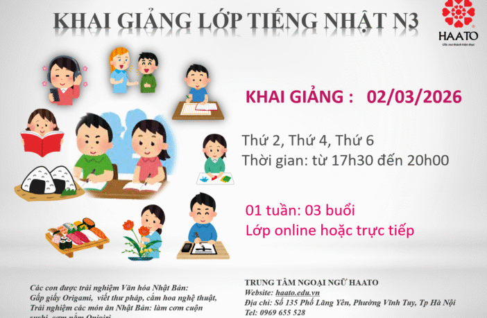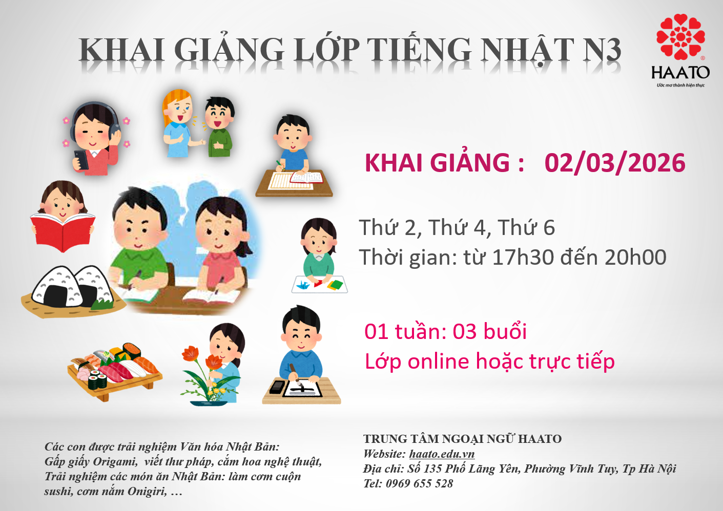 Trung tâm ngoại ngữ HAATO thông báo khai giảng lớp học tiếng Nhật N3 : Ngày 02/03/2026