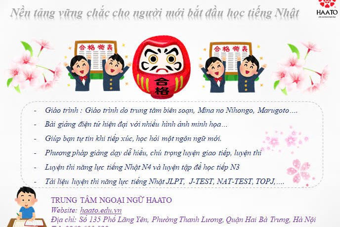Trung tâm ngoại ngữ HAATO thông báo khai giảng lớp học tiếng Nhật N4 : Ngày 02/03/2026